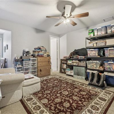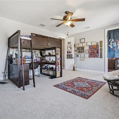 Ceiling Fan(s), Crown Molding, High Ceilings, PrimaryBedroom Upstairs, Solid Surface Counters, Solid Wood Cabinets, Split Bedroom, Stone Counters, Thermostat, Tray Ceiling(s), Walk-In Closet(s)