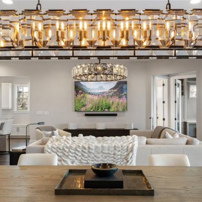 Built-in Features, Ceiling Fan(s), Dry Bar, Eating Space In Kitchen, Elevator, High Ceilings, Kitchen/Family Room Combo, Living Room/Dining Room Combo, Open Floorplan, Primary Bedroom Main Floor, Solid Wood Cabinets, Split Bedroom, Stone Counters, Thermostat, Tray Ceiling(s), Walk-In Closet(s)