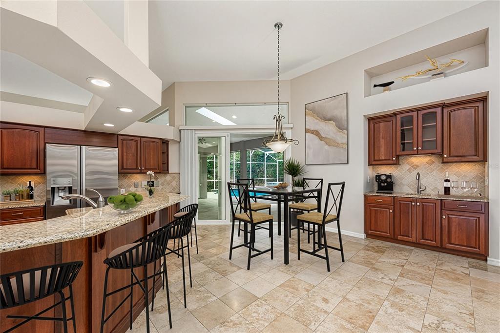 Built-in Features, Ceiling Fan(s), Eating Space In Kitchen, Kitchen/Family Room Combo, Primary Bedroom Main Floor, Skylight(s), Solid Wood Cabinets, Split Bedroom, Stone Counters, Thermostat, Tray Ceiling(s), Walk-In Closet(s), Wet Bar