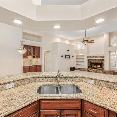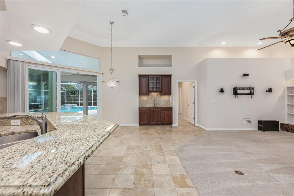Built-in Features, Ceiling Fan(s), Eating Space In Kitchen, Kitchen/Family Room Combo, Primary Bedroom Main Floor, Skylight(s), Solid Wood Cabinets, Split Bedroom, Stone Counters, Thermostat, Tray Ceiling(s), Walk-In Closet(s), Wet Bar