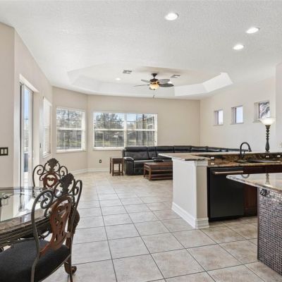 Eating Space In Kitchen, High Ceilings, Kitchen/Family Room Combo, Living Room/Dining Room Combo, Primary Bedroom Main Floor, Stone Counters, Walk-In Closet(s)