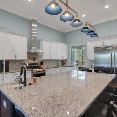 Built-in Features, Ceiling Fan(s), Crown Molding, High Ceilings, In Wall Pest System, Living Room/Dining Room Combo, Open Floorplan, Solid Wood Cabinets, Split Bedroom, Stone Counters, Walk-In Closet(s)