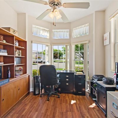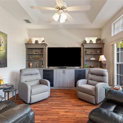Accessibility Features, Built-in Features, Ceiling Fan(s), High Ceilings, Primary Bedroom Main Floor, Solid Surface Counters, Split Bedroom, Thermostat, Tray Ceiling(s), Walk-In Closet(s), Window Treatments