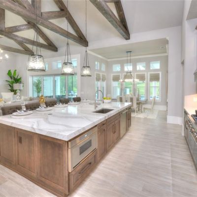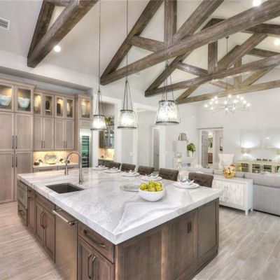 Ceiling Fan(s), Crown Molding, High Ceilings, Kitchen/Family Room Combo, Open Floorplan, Solid Surface Counters, Solid Wood Cabinets, Split Bedroom, Tray Ceiling(s), Vaulted Ceiling(s), Walk-In Closet(s), Window Treatments