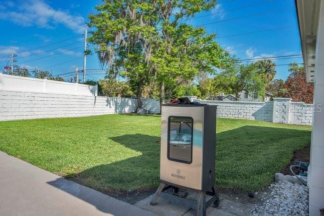 Courtyard, Irrigation System, Lighting, Outdoor Kitchen, Rain Gutters, Sidewalk, Sliding Doors, Storage