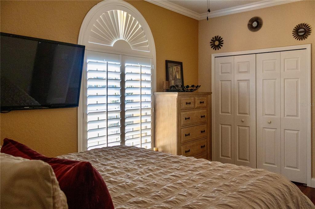 Built-in Features, Ceiling Fan(s), Central Vacuum, Crown Molding, Eating Space In Kitchen, Kitchen/Family Room Combo, Open Floorplan, Primary Bedroom Main Floor, Split Bedroom, Stone Counters, Thermostat, Walk-In Closet(s), Wet Bar, Window Treatments