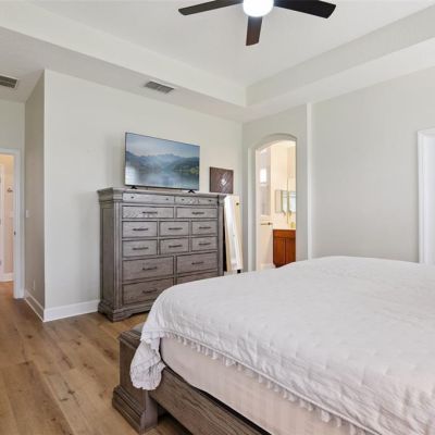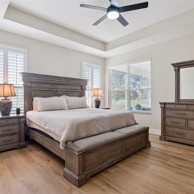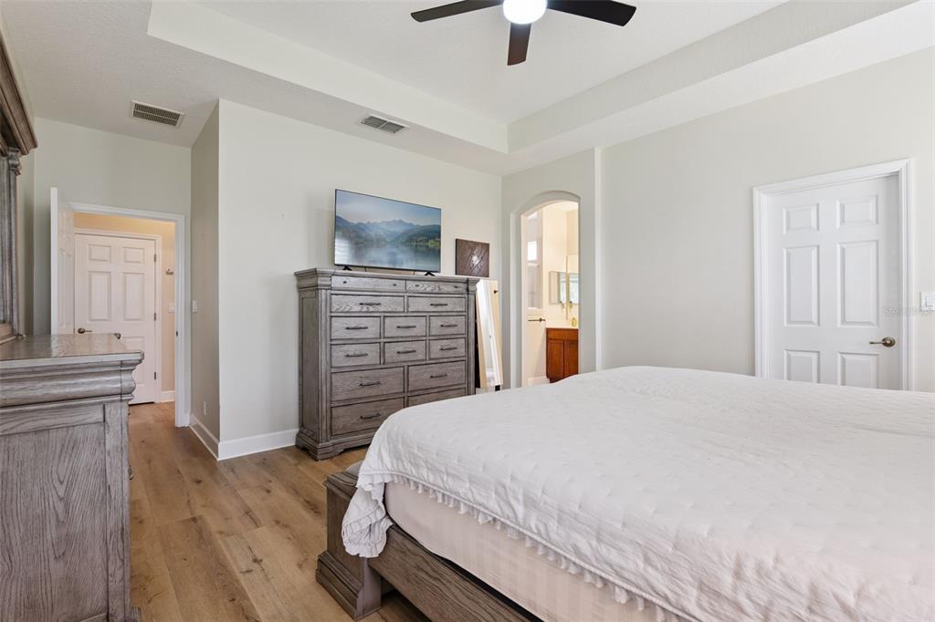 Ceiling Fan(s), Open Floorplan, Primary Bedroom Main Floor, Solid Wood Cabinets, Split Bedroom, Thermostat, Tray Ceiling(s), Walk-In Closet(s), Window Treatments