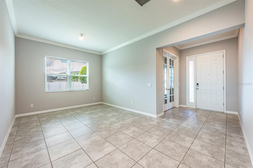 Ceiling Fan(s), Crown Molding, Eating Space In Kitchen, High Ceilings, Kitchen/Family Room Combo, Open Floorplan, PrimaryBedroom Upstairs, Solid Surface Counters, Split Bedroom, Thermostat, Tray Ceiling(s), Walk-In Closet(s), Window Treatments