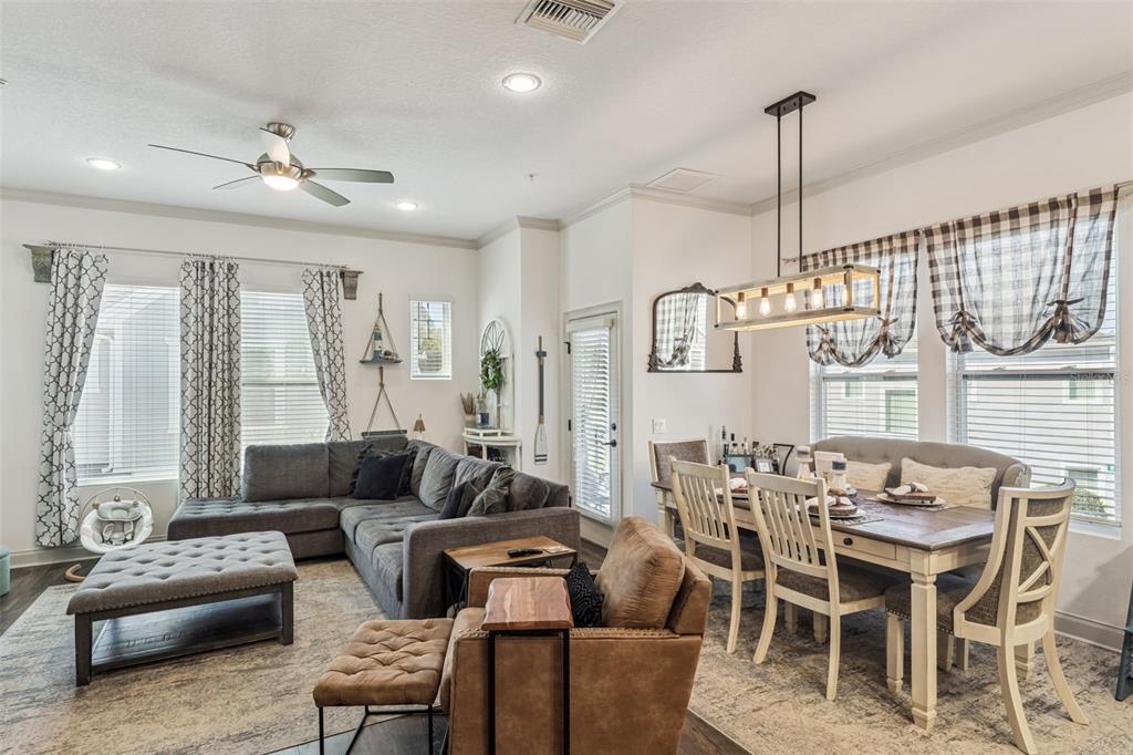 Ceiling Fan(s), Crown Molding, Living Room/Dining Room Combo, PrimaryBedroom Upstairs, Thermostat, Walk-In Closet(s), Window Treatments