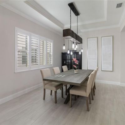 Ceiling Fan(s), Crown Molding, Primary Bedroom Main Floor, Solid Surface Counters, Solid Wood Cabinets, Thermostat, Tray Ceiling(s), Walk-In Closet(s), Wet Bar, Window Treatments