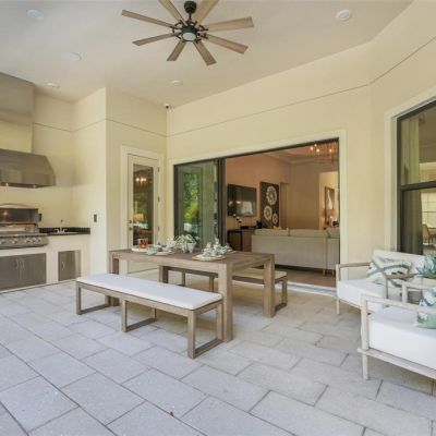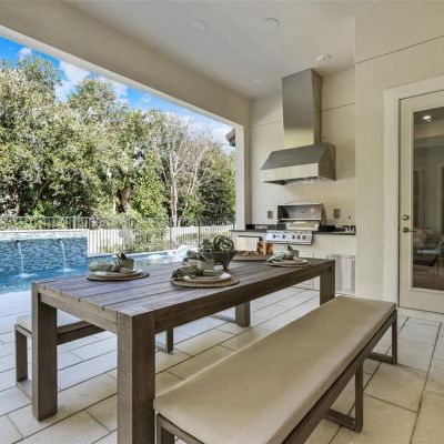 Courtyard, Fire Pit, Irrigation System, Outdoor Grill, Outdoor Kitchen, Shade Shutter(s), Sidewalk, Sliding Doors