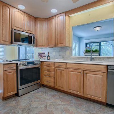 Attic Fan, Ceiling Fan(s), Eating Space In Kitchen, Primary Bedroom Main Floor, Skylight(s), Solid Surface Counters, Solid Wood Cabinets, Split Bedroom, Walk-In Closet(s), Window Treatments