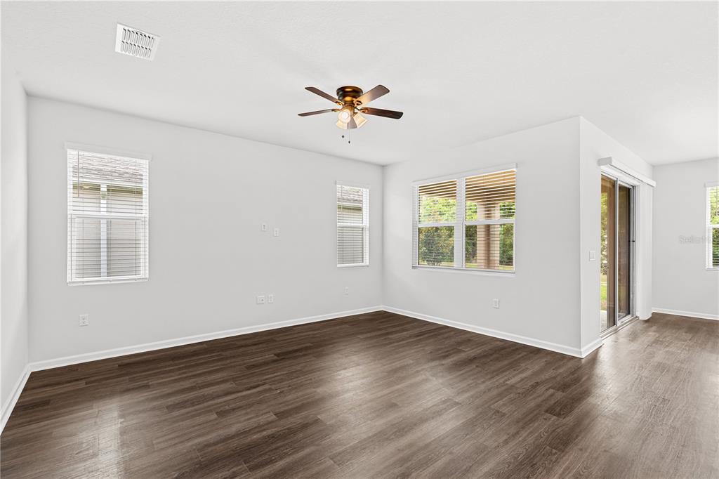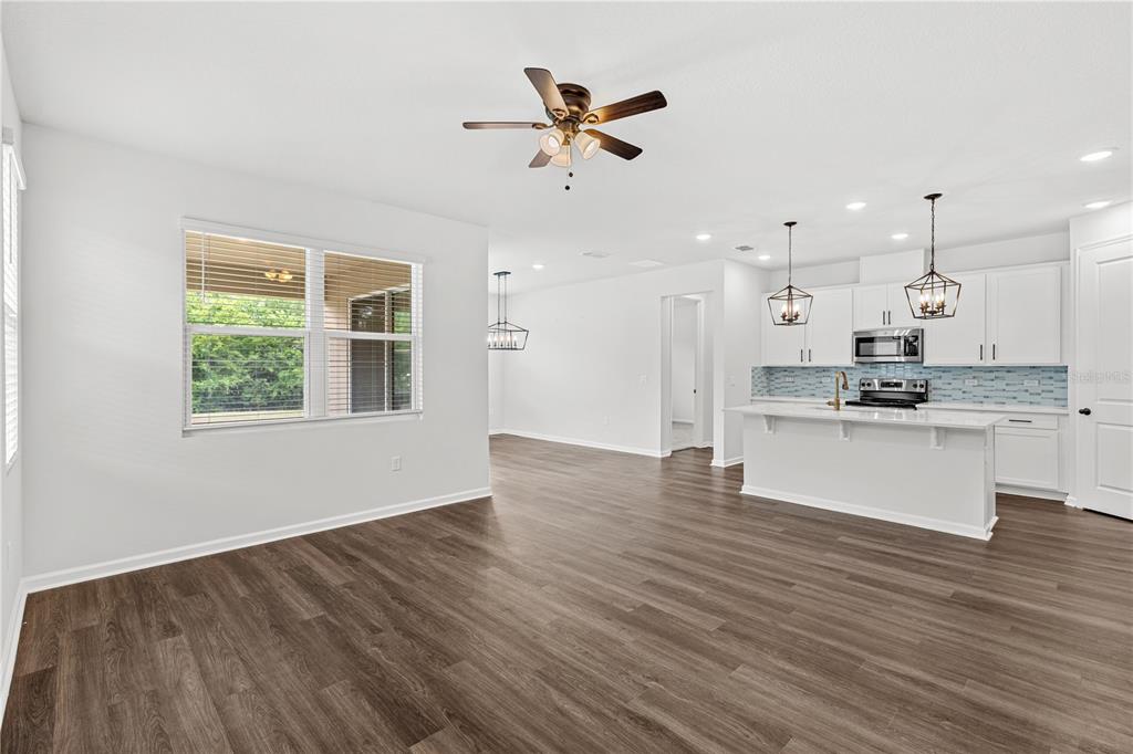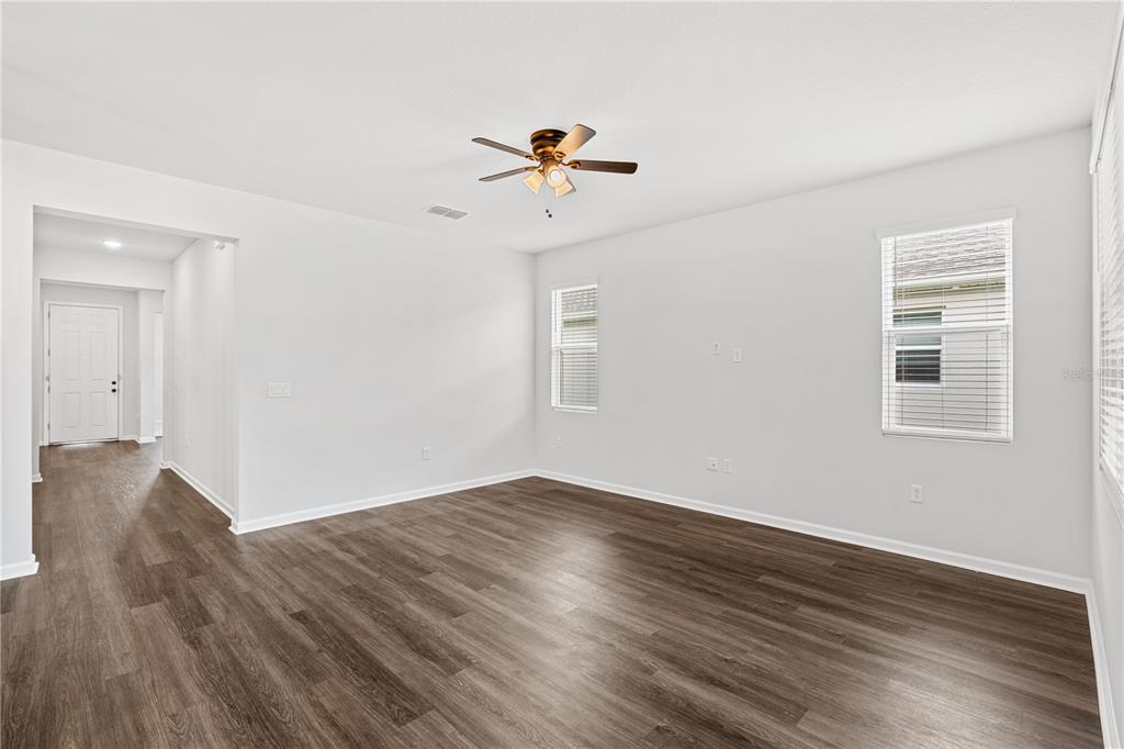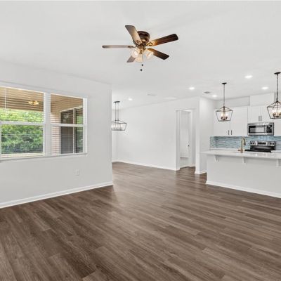 Ceiling Fan(s), High Ceilings, Kitchen/Family Room Combo, Living Room/Dining Room Combo, Open Floorplan, Primary Bedroom Main Floor, Split Bedroom, Stone Counters, Thermostat, Walk-In Closet(s)