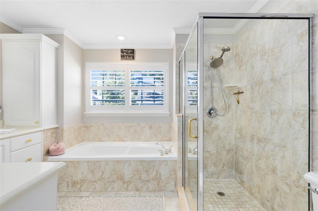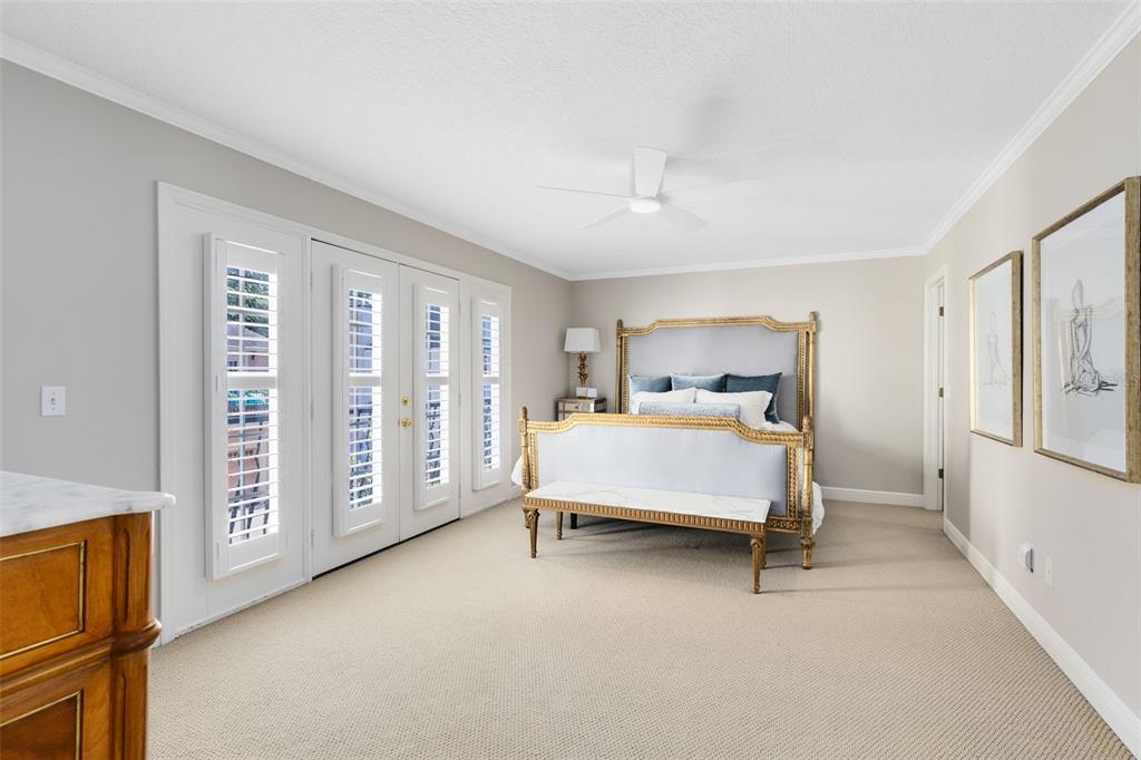 Built-in Features, Ceiling Fan(s), Crown Molding, Eating Space In Kitchen, High Ceilings, PrimaryBedroom Upstairs, Stone Counters, Walk-In Closet(s), Window Treatments