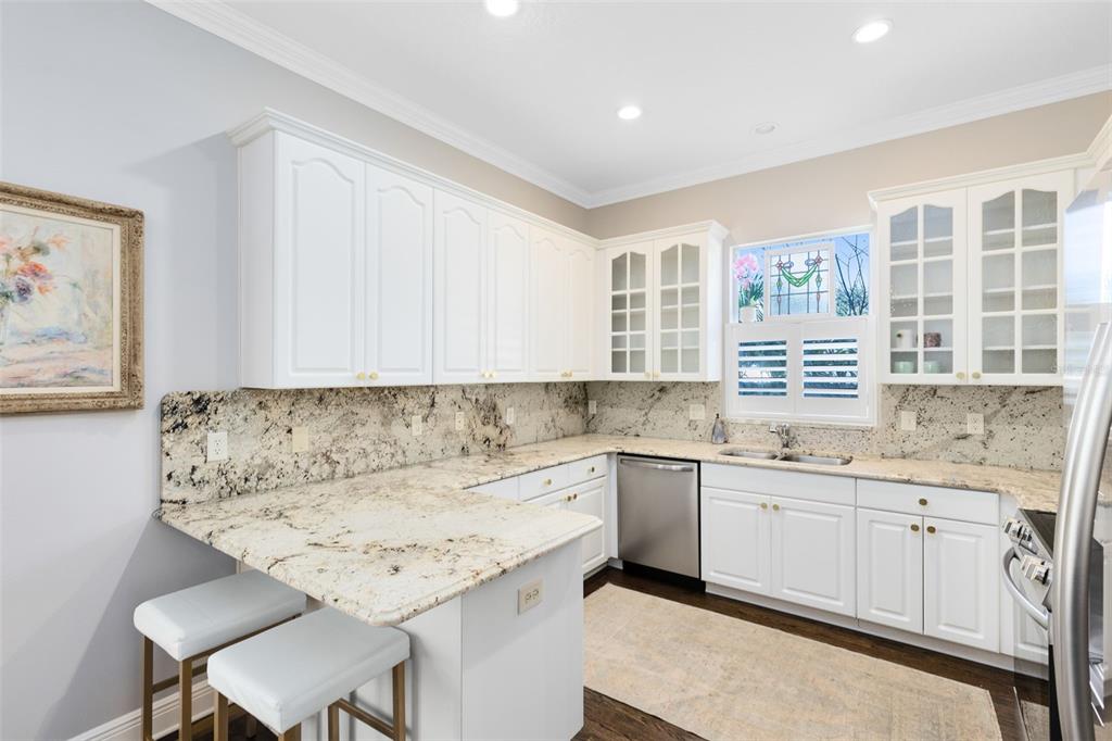 Built-in Features, Ceiling Fan(s), Crown Molding, Eating Space In Kitchen, High Ceilings, PrimaryBedroom Upstairs, Stone Counters, Walk-In Closet(s), Window Treatments