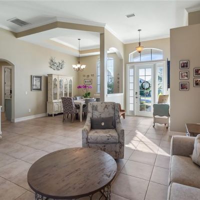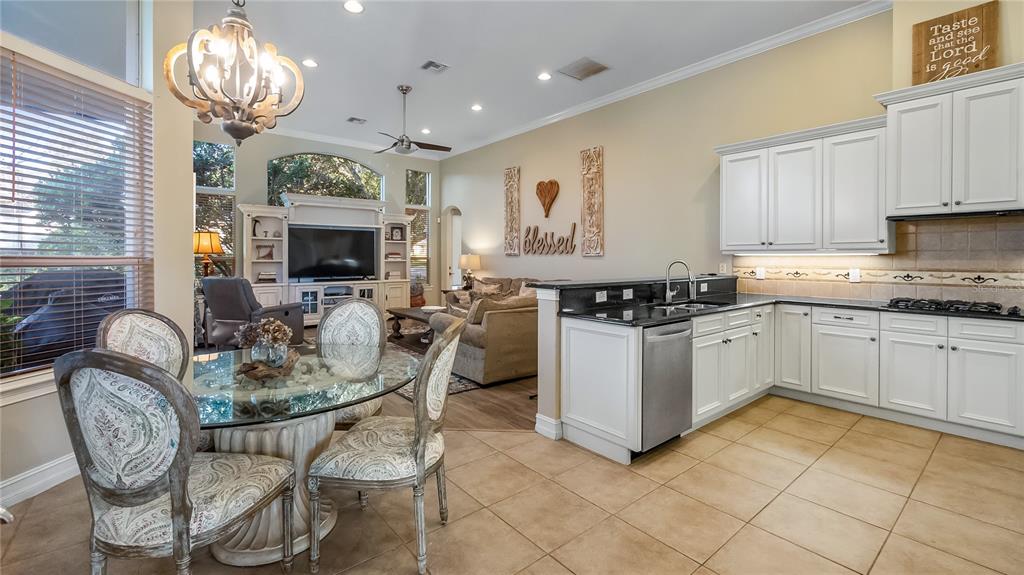 Ceiling Fan(s), Coffered Ceiling(s), Crown Molding, Eating Space In Kitchen, High Ceilings, Kitchen/Family Room Combo, Open Floorplan, Primary Bedroom Main Floor, Solid Surface Counters, Solid Wood Cabinets, Split Bedroom, Thermostat, Tray Ceiling(s), Walk-In Closet(s)