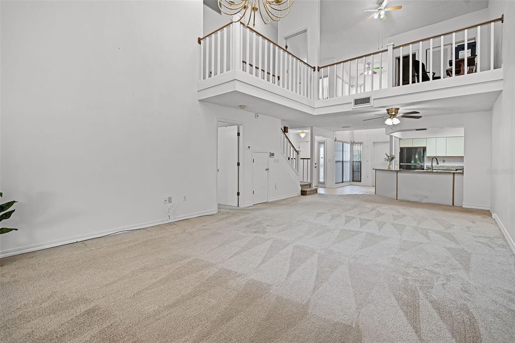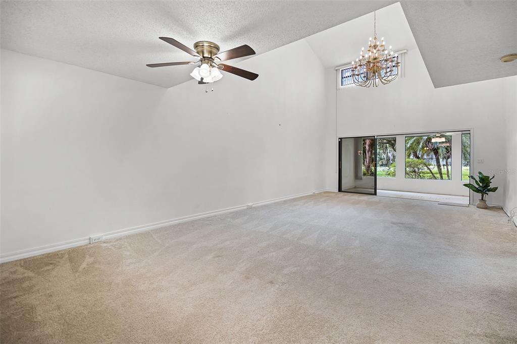 Cathedral Ceiling(s), Ceiling Fan(s), High Ceilings, Living Room/Dining Room Combo, Open Floorplan, Skylight(s), Stone Counters, Thermostat