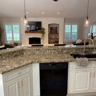 Built-in Features, Cathedral Ceiling(s), Ceiling Fan(s), Crown Molding, Eating Space In Kitchen, High Ceilings, Kitchen/Family Room Combo, Living Room/Dining Room Combo, Open Floorplan, Primary Bedroom Main Floor, Skylight(s), Solid Surface Counters, Solid Wood Cabinets, Split Bedroom, Stone Counters, Thermostat, Vaulted Ceiling(s), Walk-In Closet(s), Window Treatments