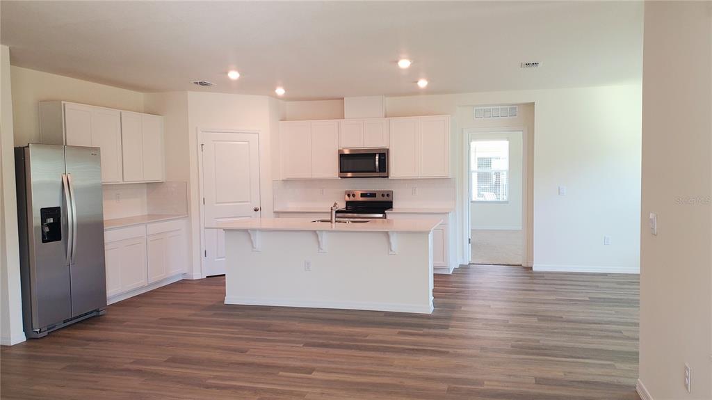 Eating Space In Kitchen, Kitchen/Family Room Combo, Open Floorplan, Solid Surface Counters, Split Bedroom, Stone Counters, Thermostat, Walk-In Closet(s)