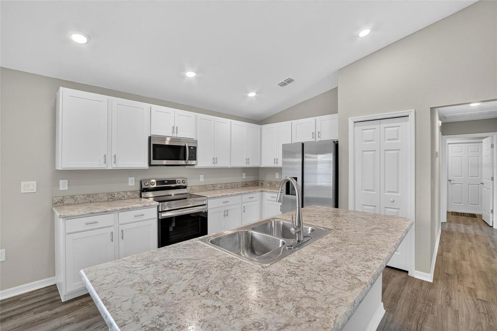 Ceiling Fan(s), Living Room/Dining Room Combo, Open Floorplan, Stone Counters