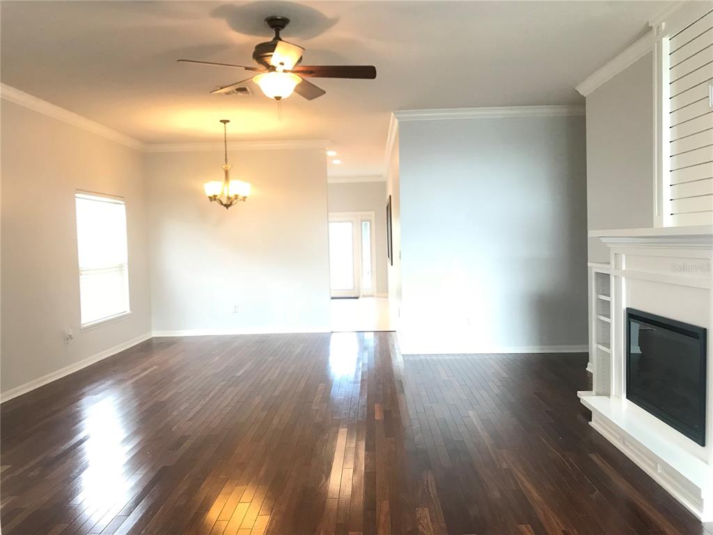 Built-in Features, Crown Molding, High Ceilings, Open Floorplan, Primary Bedroom Main Floor, Walk-In Closet(s), Window Treatments