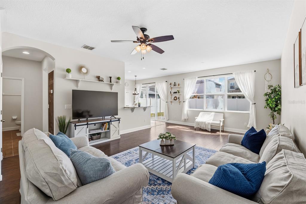 Ceiling Fan(s), Eating Space In Kitchen, Kitchen/Family Room Combo, Open Floorplan, PrimaryBedroom Upstairs, Walk-In Closet(s)