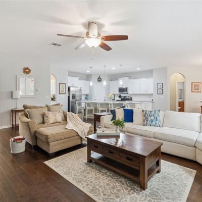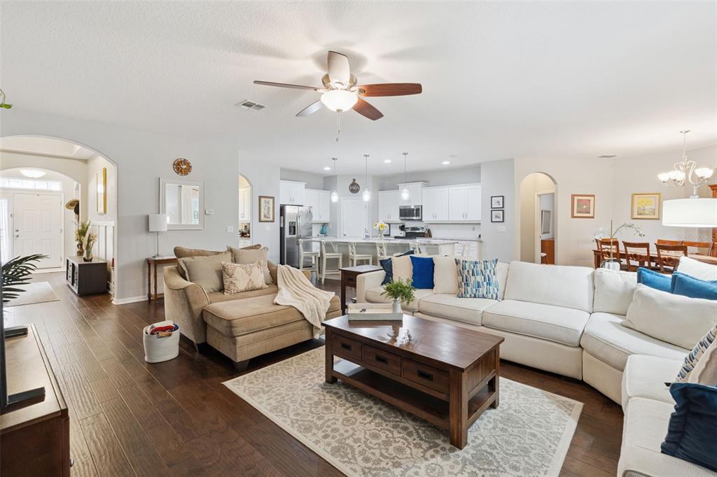 Ceiling Fan(s), Eating Space In Kitchen, Kitchen/Family Room Combo, Open Floorplan, Split Bedroom, Stone Counters, Tray Ceiling(s), Walk-In Closet(s)