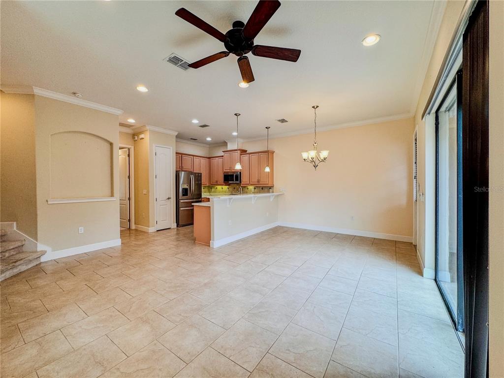 Ceiling Fan(s), Eating Space In Kitchen, High Ceilings, Kitchen/Family Room Combo, Living Room/Dining Room Combo, Primary Bedroom Main Floor, PrimaryBedroom Upstairs, Stone Counters, Walk-In Closet(s), Window Treatments