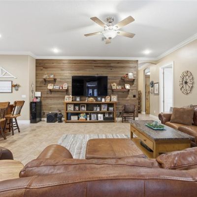 Ceiling Fan(s), Crown Molding, Kitchen/Family Room Combo, Open Floorplan, Solid Wood Cabinets, Split Bedroom