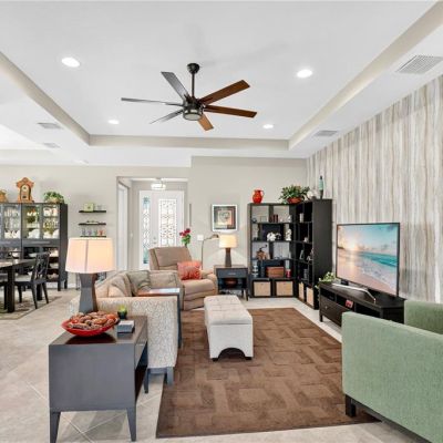 Ceiling Fan(s), Coffered Ceiling(s), Eating Space In Kitchen, High Ceilings, Kitchen/Family Room Combo, Open Floorplan, Primary Bedroom Main Floor, Solid Surface Counters, Solid Wood Cabinets, Walk-In Closet(s)