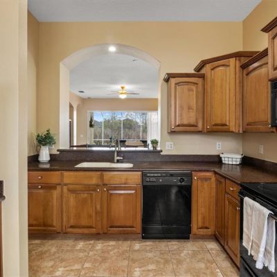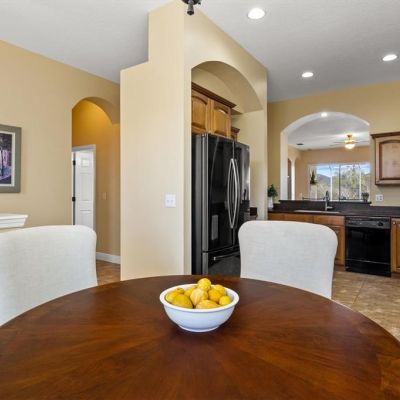 Ceiling Fan(s), Crown Molding, Eating Space In Kitchen, High Ceilings, Open Floorplan, Primary Bedroom Main Floor, Solid Surface Counters, Solid Wood Cabinets, Stone Counters, Tray Ceiling(s), Walk-In Closet(s)