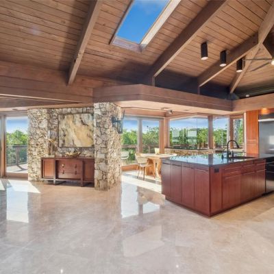 Cathedral Ceiling(s), Ceiling Fan(s), Dry Bar, Eating Space In Kitchen, High Ceilings, Kitchen/Family Room Combo, Living Room/Dining Room Combo, Open Floorplan, Primary Bedroom Main Floor, Sauna, Skylight(s), Solid Surface Counters, Solid Wood Cabinets, Split Bedroom, Stone Counters, Thermostat, Vaulted Ceiling(s), Walk-In Closet(s), Window Treatments