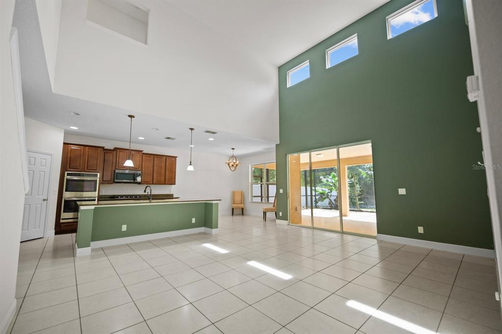 Built-in Features, Ceiling Fan(s), Eating Space In Kitchen, High Ceilings, Kitchen/Family Room Combo, Open Floorplan, Primary Bedroom Main Floor, Solid Wood Cabinets, Walk-In Closet(s), Window Treatments
