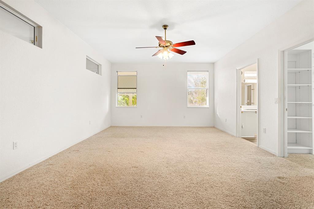 Attic Fan, Attic Ventilator, Cathedral Ceiling(s), Ceiling Fan(s), Central Vacuum, Chair Rail, High Ceilings, Kitchen/Family Room Combo, Open Floorplan, Primary Bedroom Main Floor, Solid Surface Counters, Split Bedroom, Thermostat, Vaulted Ceiling(s), Walk-In Closet(s), Window Treatments