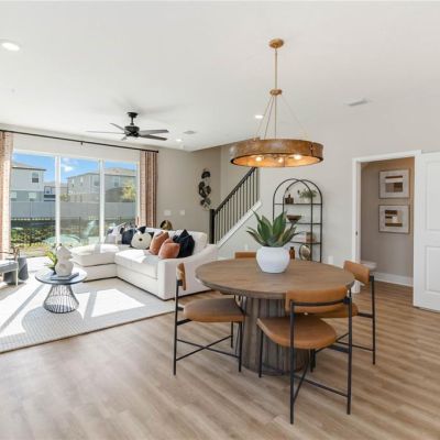 Eating Space In Kitchen, High Ceilings, Kitchen/Family Room Combo, Living Room/Dining Room Combo, PrimaryBedroom Upstairs, Solid Surface Counters, Split Bedroom, Thermostat, Walk-In Closet(s)