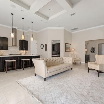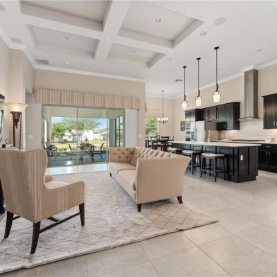 Ceiling Fan(s), Coffered Ceiling(s), Crown Molding, Eating Space In Kitchen, High Ceilings, In Wall Pest System, Kitchen/Family Room Combo, Open Floorplan, Primary Bedroom Main Floor, Solid Surface Counters, Split Bedroom, Thermostat, Tray Ceiling(s), Walk-In Closet(s)