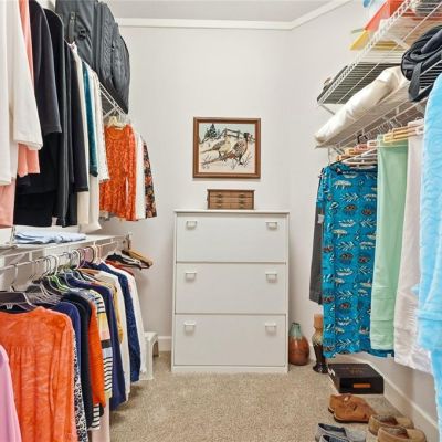 Crown Molding, Eating Space In Kitchen, Kitchen/Family Room Combo, Open Floorplan, Primary Bedroom Main Floor, Solid Surface Counters, Walk-In Closet(s)