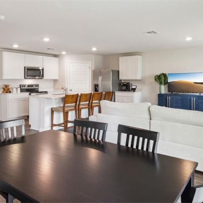 Eating Space In Kitchen, Kitchen/Family Room Combo, Living Room/Dining Room Combo, Open Floorplan, Solid Surface Counters, Split Bedroom, Stone Counters, Thermostat, Walk-In Closet(s)