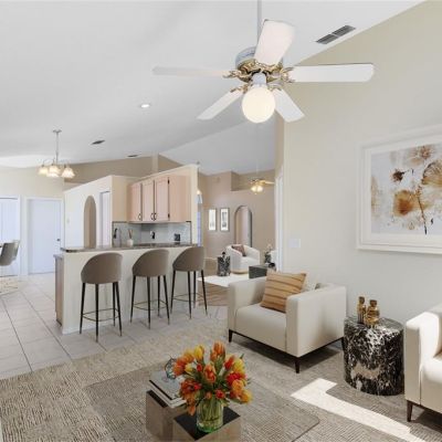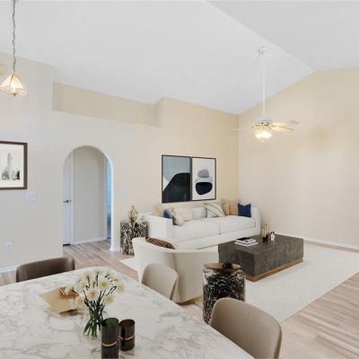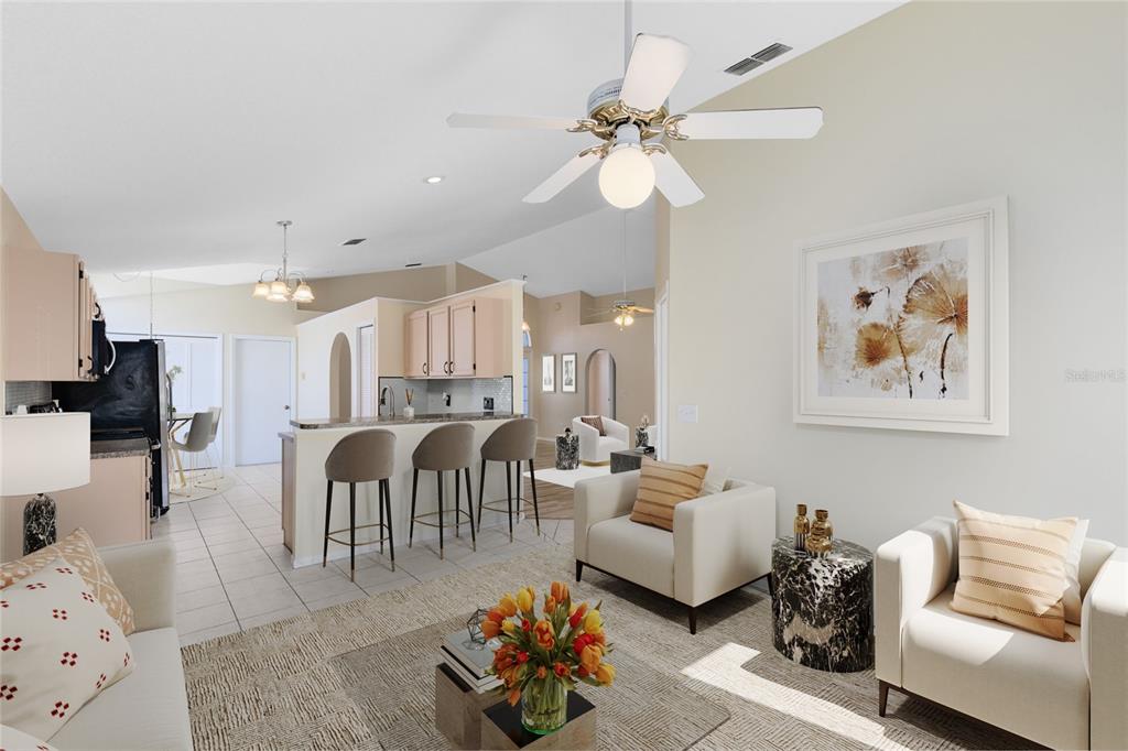 Ceiling Fan(s), Eating Space In Kitchen, High Ceilings, Kitchen/Family Room Combo, Living Room/Dining Room Combo, Open Floorplan, Primary Bedroom Main Floor, Vaulted Ceiling(s), Walk-In Closet(s)