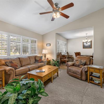 Ceiling Fan(s), Kitchen/Family Room Combo, Primary Bedroom Main Floor, Split Bedroom, Stone Counters, Walk-In Closet(s), Window Treatments