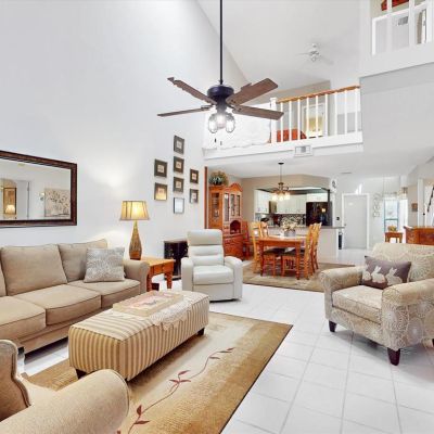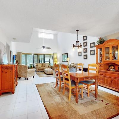 Cathedral Ceiling(s), Ceiling Fan(s), Eating Space In Kitchen, High Ceilings, Living Room/Dining Room Combo, Open Floorplan