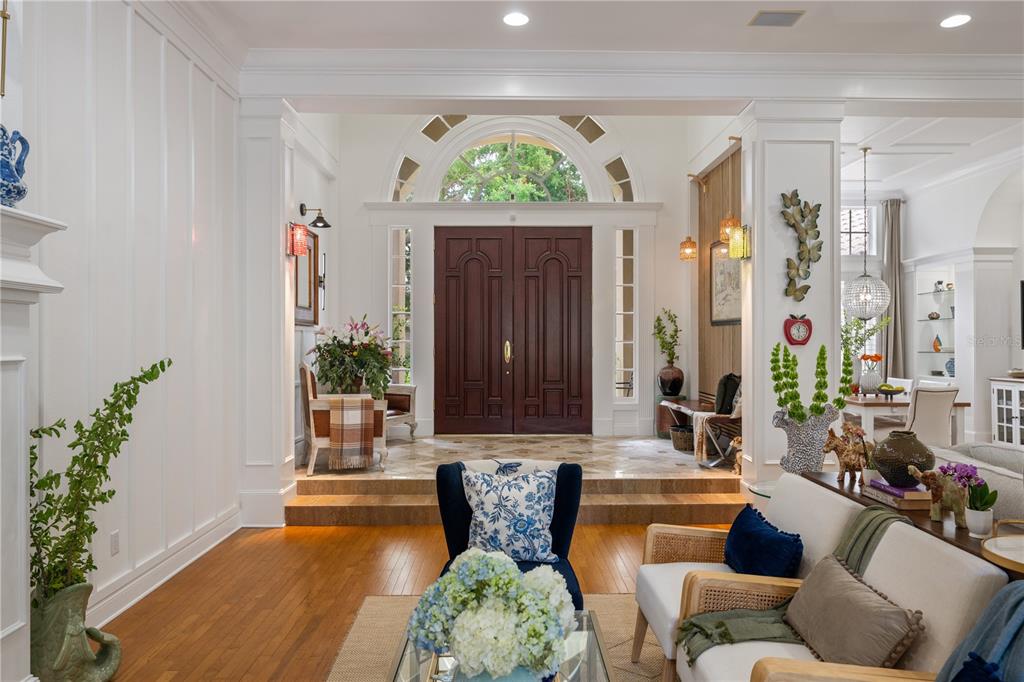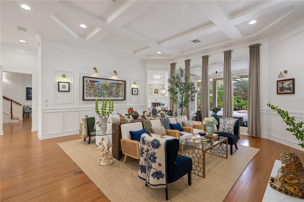 Ceiling Fan(s), Crown Molding, Eating Space In Kitchen, High Ceilings, Kitchen/Family Room Combo, Open Floorplan, Primary Bedroom Main Floor, Walk-In Closet(s)