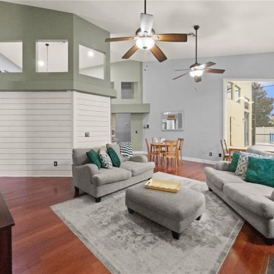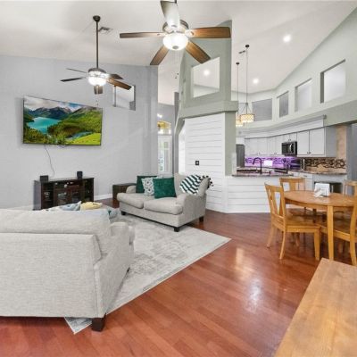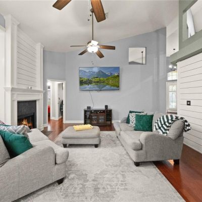 Cathedral Ceiling(s), Ceiling Fan(s), Eating Space In Kitchen, High Ceilings, Living Room/Dining Room Combo, Open Floorplan, Primary Bedroom Main Floor, Solid Wood Cabinets, Stone Counters, Walk-In Closet(s), Window Treatments