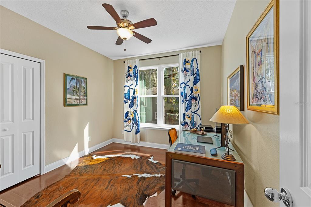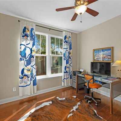 Ceiling Fan(s), Crown Molding, Eating Space In Kitchen, High Ceilings, Living Room/Dining Room Combo, Open Floorplan, PrimaryBedroom Upstairs, Solid Surface Counters, Solid Wood Cabinets, Split Bedroom, Stone Counters, Thermostat, Walk-In Closet(s), Window Treatments