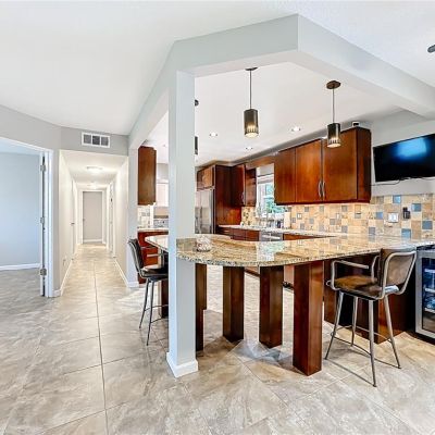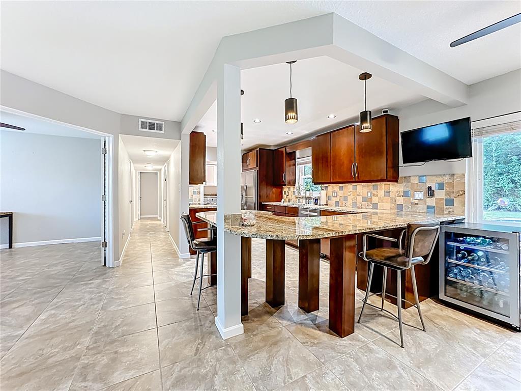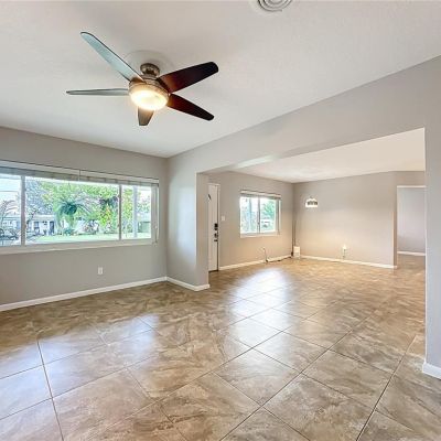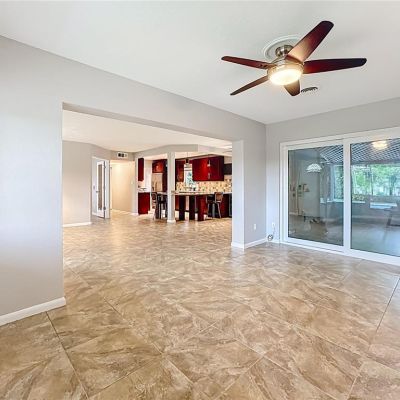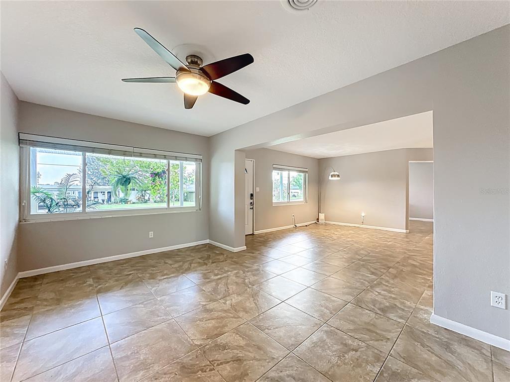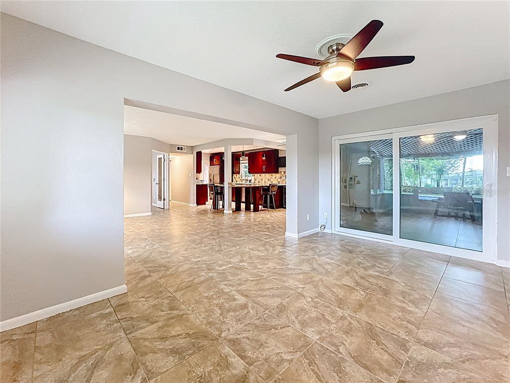 Ceiling Fan(s), Eating Space In Kitchen, Kitchen/Family Room Combo, Open Floorplan, Solid Surface Counters, Solid Wood Cabinets, Window Treatments