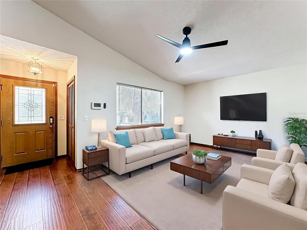 Ceiling Fan(s), Eating Space In Kitchen, High Ceilings, L Dining, Living Room/Dining Room Combo, Solid Surface Counters, Solid Wood Cabinets, Walk-In Closet(s)