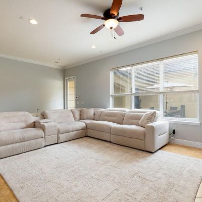 Built-in Features, Ceiling Fan(s), Crown Molding, Eating Space In Kitchen, High Ceilings, In Wall Pest System, Kitchen/Family Room Combo, Open Floorplan, Solid Wood Cabinets, Stone Counters, Thermostat, Window Treatments