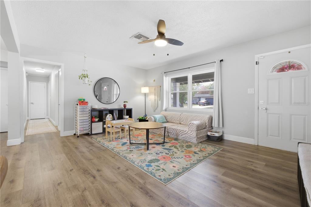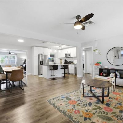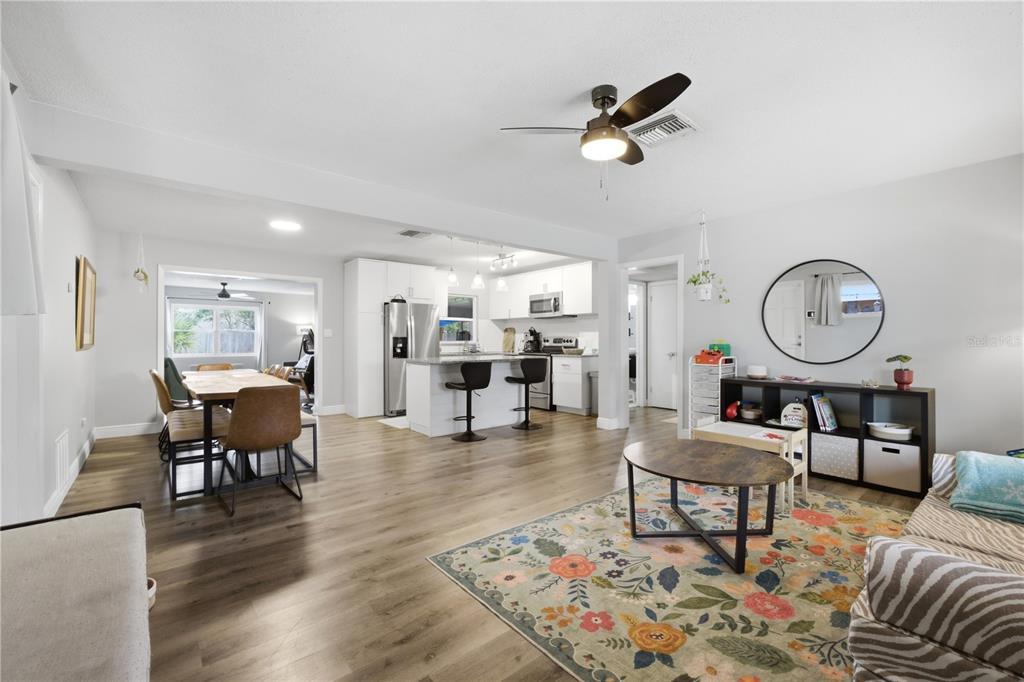 Attic Fan, Ceiling Fan(s), Kitchen/Family Room Combo, Living Room/Dining Room Combo, Open Floorplan, Primary Bedroom Main Floor, Walk-In Closet(s)