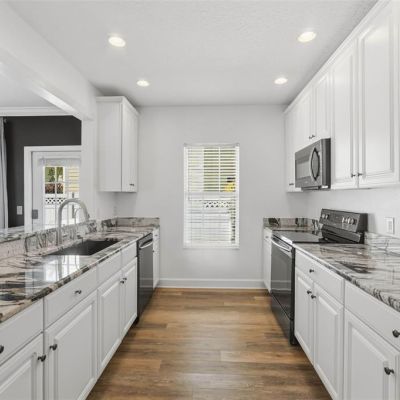 Crown Molding, High Ceilings, Kitchen/Family Room Combo, Stone Counters, Thermostat, Walk-In Closet(s), Window Treatments