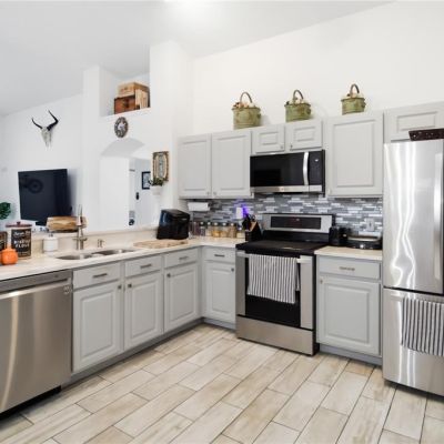 Dishwasher, Disposal, Dryer, Microwave, Range, Touchless Faucet, Washer